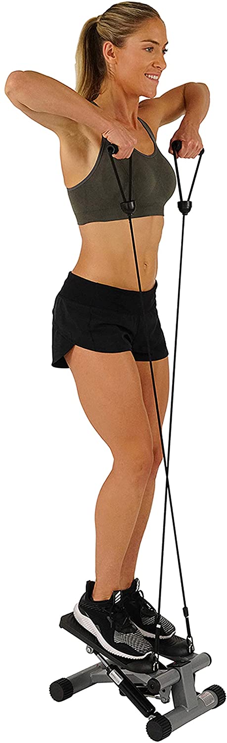 Get fit and healthy in the comfort of your own home with the Sunny Health & Fitness No 012s Mini Stepper with resistance bands Offering a full cardio workout and strengthening your muscles this stepper exercise machine can help you get a shapely and toned body as well as full body workout Work out anywhere at any time! This stepper with removable resistance bands is easily assembled simply unbox and attach the included resistance bands to begin your fitness journey! Convenient easy-assembly means you can save time money and energy on putting together your stepper!