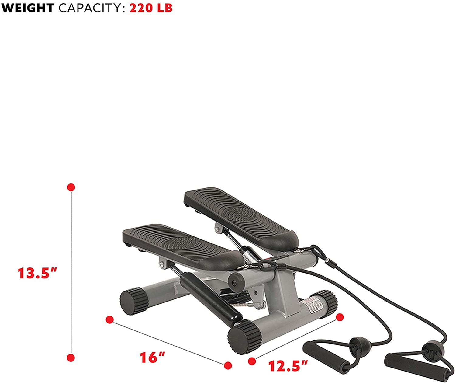 Get fit and healthy in the comfort of your own home with the Sunny Health & Fitness No 012s Mini Stepper with resistance bands Offering a full cardio workout and strengthening your muscles this stepper exercise machine can help you get a shapely and toned body as well as full body workout Work out anywhere at any time! This stepper with removable resistance bands is easily assembled simply unbox and attach the included resistance bands to begin your fitness journey! Convenient easy-assembly means you can save time money and energy on putting together your stepper!