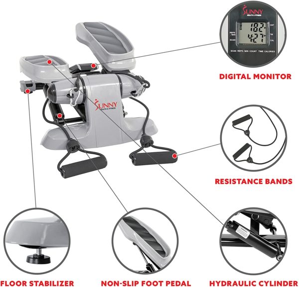 Sunny Health & Fitness Versa Stepper Step Machine w/Wide Non-Slip Pedals, Resistance Bands and LCD Monitor – SF-S0870